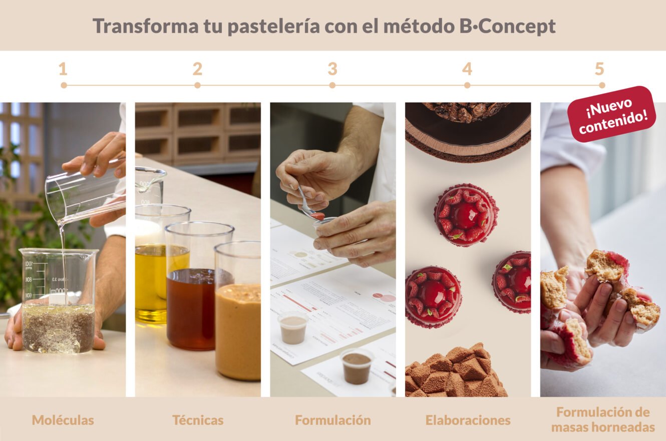 En el curso B·Concept, Jordi Bordas ha compilado todos los conocimientos adquiridos a lo largo de más de 15 años de experiencia e investigación. Está distribuido en 5 módulos, diseñados para que adquieras los conocimientos teóricos y prácticos necesarios y aprendas a formular tus propias recetas con el método B·Concept.